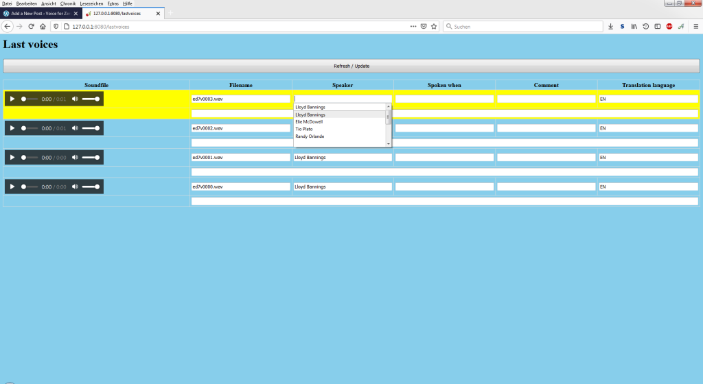 Last voices | Show last played voices from the game and provide an input form. | in development / testing |